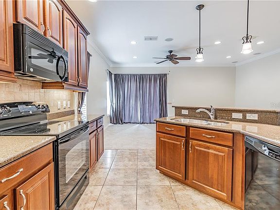 - Interior Features: Ceiling Fans(s), Eating Space In Kitchen, High Ceiling(s), Open Floorplan, Stone Counters, Walk-In Closet(s), Crown Molding, Solid Wood Cabinets, Thermostat, Kitchen/Family Room Combo, Window Treatments
