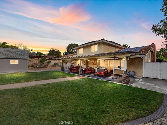 Designed for comfortable family living, this home offers a spacious layout with the primary suite conveniently located on the lower level and three additional bedrooms upstairs. The galley-style kitchen overlooks a lush backyard filled with fruit-bearing trees, two large storage sheds, and generous RV parking—perfect for your trailers, sand toys, or weekend adventures.