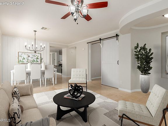 Don't miss out on this amazing value for a spacious and recently updated single level home with huge cul-de-sac lot! Travertine flooring throughout this 3 bed/2 bath plus den 2090 SF split floor plan. Remodeled gourmet kitchen boasts granite counters, tiled backsplash to ceiling, white cabinetry and stainless steel appliances including gas range. The enclosed den with barn doors is perfect home office. Master suite has a gorgeous spa bath with double sinks, newly custom tiled shower and free standing soaking tub. Over 1/4 acre private lot with covered patio, fruit trees, garden and plenty of space for everyone. New HVAC and water heater too. You must see this one in person as you won't find another home like this so close to everything in the heart of Surprise!