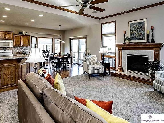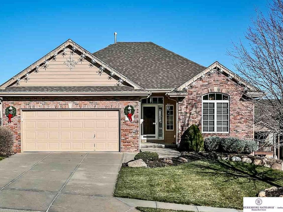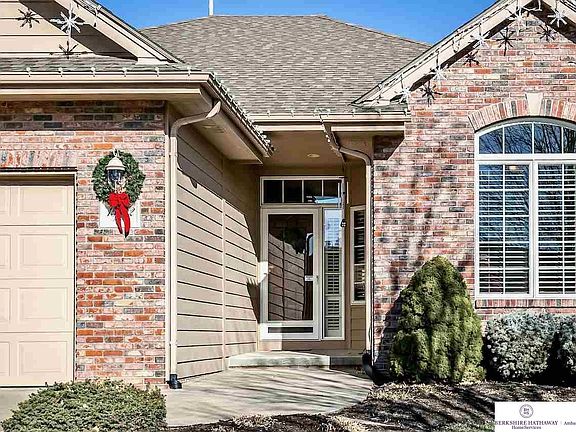 Enjoy carefree living in one of Omaha's premier villa communities. Custom built Woodland Homes ranch with 4 bedrooms and 3 bathrooms. Walk into an open floor plan with beautiful dark wood floors, two feature gas fireplaces and loads of natural light. Gather in the spacious eat-in kitchen equipped w/ beautiful cabinets, tile backsplash, pantry, breakfast bar & informal dining area. Master suite features tray ceilings, 5-pc en suite and huge walk-in closet. Entertain in the finished walk-out LL w wet bar, open family room, a full bathroom and two additional bedrooms. "Hidden" exercise room/2nd office in lower level. Relax on the covered deck w peaceful scenery. Two nice sized storage rooms. The pride of ownership beams throughout this home from top to bottom! NEWER roof, AC, furnace and H2O heater.