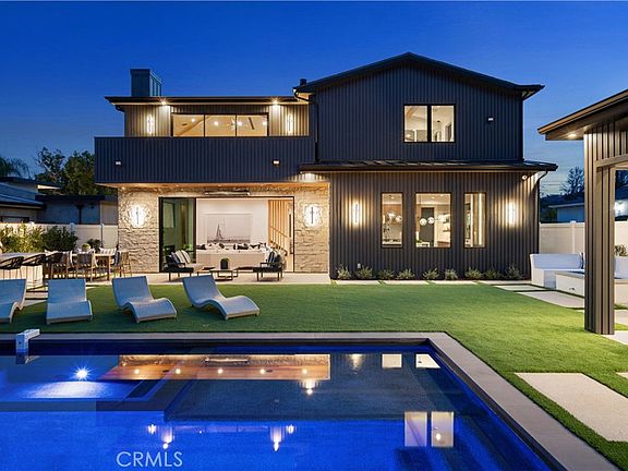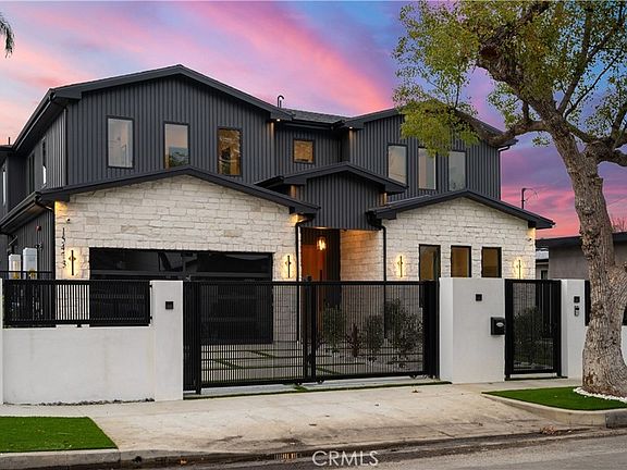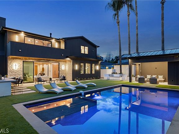 Stunning Newly constructed modern farmhouse situated in a quiet Sherman Oaks neighborhood. Past the gates and beautiful curb appeal leads guests into a covered entrance with high ceilings, designer lighting, and European oak floors throughout. An elegant living room with stone fireplace adjacent to a formal dining room with custom built-ins and Chef’s kitchen with large center island, quartz counters, stainless steel appliances, and large walk-in pantry. The spacious living room with beautiful built-ins and fireplace opens its floor to ceiling pocket glass doors to a spacious entertainer's yard. Upstairs, the romantic primary suite features a sitting area, fireplace, two walk-in closets, and a spa-like primary bath with spa tub, glass rain shower, dual sinks, makeup vanity, and water closet. Entertainer’s yard features sparkling pool and spa, firepit, Built-in BBQ and pool cabana equipped with a bathroom. Additional conveniences include an upstairs laundry room, smart home integrated control 4 system and 2 car garages. A luxurious lifestyle near Sherman Oaks shops, fine dining, and more.
