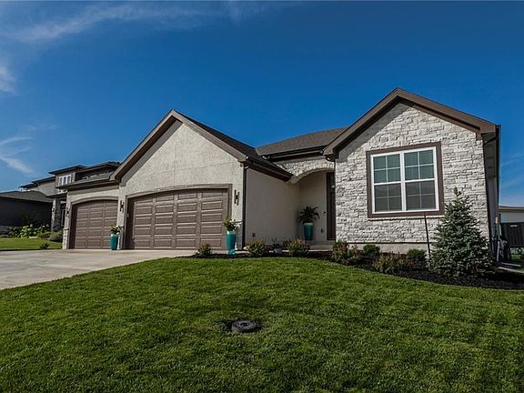 Custom built home with a ton of upgrades! In a cul-de-sac with Great families and kids, If your looking for a new home but don't want to wait, THIS IS YOUR HOUSE! This 1.5 Reverse is a stunning plan. It features a great room and kitchen with millwork surrounding every corner and large windows bring in a ton of natural light. The spacious living area features a gorgeous fireplace that rises to the ceiling, with lighted floating cabinets and shelves, that create a welcome gathering space. The kitchen features quartz countertops, a large island, painted custom perimeter cabinets, a deep walk-in pantry, wood ceiling trusses, and a dedicated dining area, overlooking the lovely back yard. The primary suite is on the main level with a gorgeous master bath, large Italian tile, with a connected walk-in closet and laundry right at your fingertips. A second bedroom and bath on the main are perfect for a work from home office or a guest bedroom. The large media room in the finished lower level with a bar/kitchen is perfect for game day, movie night, or just hanging out. The additional two bedrooms and bath, along with plenty of extra storage completes the lower level. Enjoy the lovely covered patio with Oversize backyard, perfect for barbeques or just relaxing. It also has a extra patio with a sidewalk to the rear garage walkout. For car lovers or those that need extra space, there is a 4-car garage.