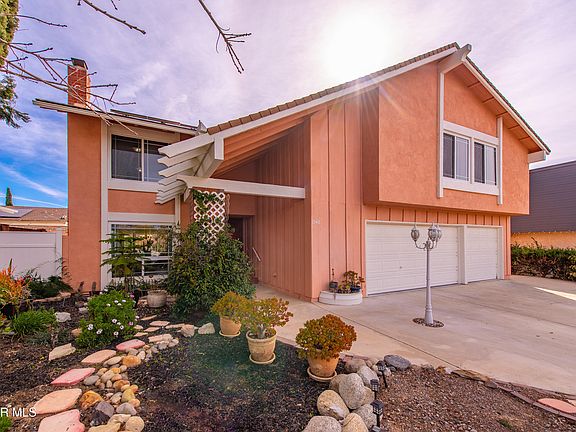 Welcome to this spacious home located in central Simi Valley. This home has 5 bedrooms and 3.5 baths with almost 2700 sq. ft. of living area, on a 6565 sq. ft. lot. Raised entry features a newer custom hardwood door. Step down living room has a fireplace and wood like laminet flooring. The newly upgraded kitchen features natural wood cabinets, newly installed quartz countertops and stainless steel appliances. The family room is a great place to gather with slider to the rear yard and access to the 3 car garage. Entire upstairs has new carpet where you will find 5 bedrooms with 2 large master suites both with upgraded baths and walk-in closets. Other features include newer heating and A/C system, newer water heater and dual-pane windows and slider and energy efficient solar panels. Located on a cul-de-sac street, this home is close to schools, parks and shopping.
