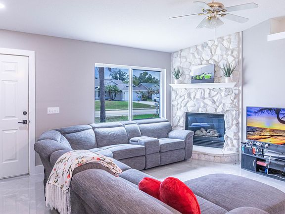 Cozy gas fireplacePrivate patio oasisNew roofQuartz countertopsSerene master bathImpact windowsNew tile floors