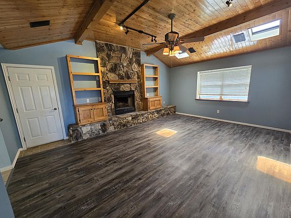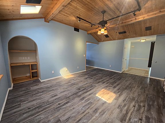 Welcome to your charming new home at 1548 Bosc Ct in Clovis, NM! This cozy house features 2 bedrooms and 2 bathrooms, perfect for a small family or couple looking for their dream home. As you approach the property, you'll be greeted by a beautiful front yard complete with a flagpole, creating a warm and inviting atmosphere. Step inside to discover a stunning interior boasting custom knotty pine ceilings, built-in bookshelves, and a desk - perfect for those who love rustic charm and functionality. The kitchen is a chef's paradise with granite countertops that provide both style and durability. Don't miss out on the opportunity - schedule a showing today!