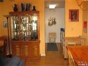 Beautifully appointed lower unit w/ open concept floor plan, handsome cabinets, tasteful fixtures, tile countertops, parking in gated area, ready for new owner, property sold as is