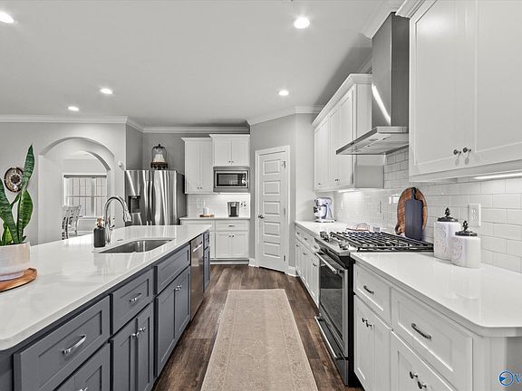 - Features: Crown Molding, Kitchen Island, Laminate Floor, Pantry, Recessed Lighting, Smooth Ceiling