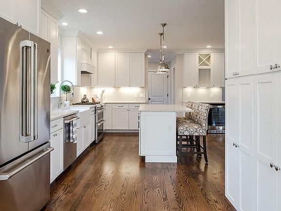 Yard is being expanded 1,000 sq ft! New construction- classic New England home. This 4.5 bed and 2.5 bath gambrel colonial has 3 finished floors and 2 car garage with ample off street parking. All selections have been tastefully selected by designer. The first floor features a chef's kitchen with island that opens into a family room with gas fireplace. Kitchen features beautiful quartz counter tops, wine fridge, stainless steel appliances and more! Its open floor plan makes it ideal for hosting. On the second floor you will find 3 similarly sized bedrooms and a master en suite, all with built in closets! There is an additional room with a closet that can be used as an office or extra bedroom. Walk up to the finished attic space, or down to the unfinished walkout basement.The location is close to the Wellesley line and minutes away from downtown Needham. Walk 6 houses down and find a path that leads to Newman Elementary school.
