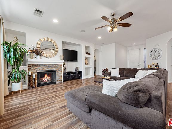 Welcome to 1548 Hunter Moon Way, a beautifully maintained single-story home that has been kept in immaculate condition by its original owner since it was built. Featuring 4 bedrooms, 2 bathrooms and 2,056 sq. ft. of thoughtfully designed living space, this home sits on one of the largest lots in the community with over 11,000 sq. ft. of usable space for entertaining, relaxing, or future expansion. Step inside to find an open and inviting floor plan featuring a modern, updated kitchen with sleek finishes, spacious quartz countertops, new LPV floors and a seamless flow into the living and dining areas making it perfect for family gatherings. The spacious primary bedroom offers a peaceful retreat with an en suite bathroom and a serene view of the expansive backyard, creating the ideal balance of comfort and tranquility. The three additional bedrooms are generously sized and located on the opposite side of the home, providing an excellent layout for privacy- ideal for families, guests, or a dedicated home office setup. An updated bathroom adds a fresh, contemporary touch, while the expansive backyard offers endless potential for a pool, garden, or outdoor living oasis. Located in a family-friendly community complete with a large park and basketball courts, this home delivers modern comfort, community and convenience all in one. Enjoy the best of Beaumont living just minutes from the Cabazon Outlets, 6th Street shops and the scenic San Gorgonio Pass, with easy access to the San Bernardino Mountains for weekend adventures. In addition to boasting a top-rated school system, this is a rare opportunity to own a pristine, move-in-ready home on a premier lot in one of Beaumont's most desirable communities.