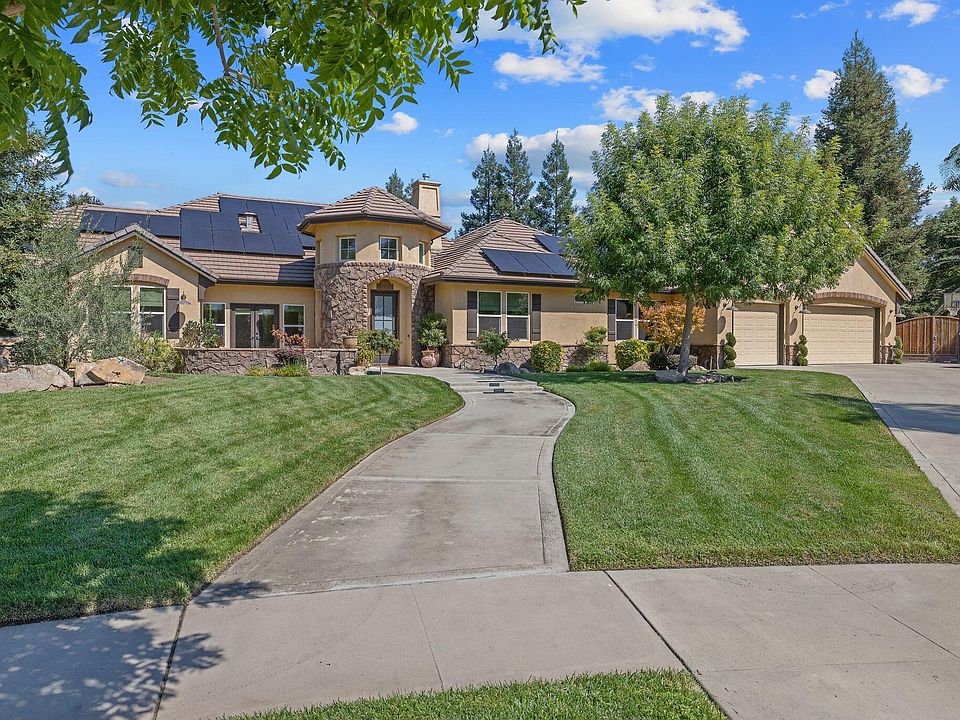 Exterior - Private oasis w/ mature landscaping and a mix of fruit trees (Apple, Asian Pear, Oranges, Nectarines, Peaches, Pluots, Cherries, Plums, Apriums and Avacado), Large pool and spa with lights, updated equipment, & 3 waterfall spillways, Covered patio with outdoor kitchen (grill, sink, fridge) and gas firepit, Large side yard with RV access/parking—suitable for ADU, future sports court, storage, or additional parking.Garage & parking: 3-car garage with backyard access and long driveway.