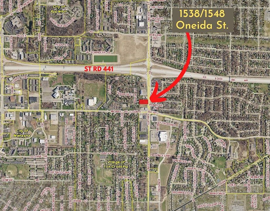Almost an acre of prime commercial land ready for your next retail, fast food location. Located in the Village of Fox Crossings on Oneida Street, US Highway 10 just south of the 441/10 interchange, this site has 22,000 VPD with residential surrounding this commercial area. Site has 2 homes that will need to come down but well worth the location. There are two tax parcels: 121003405 & 121003403.