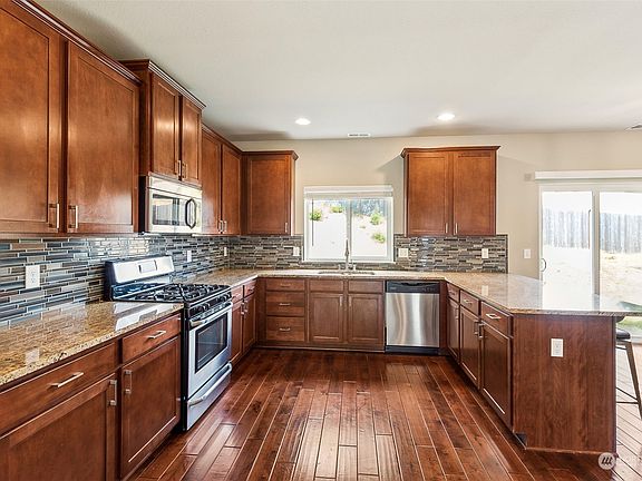 Perched on Tumwater Hill with stunning sunrise views of Mt. Rainier from the patio & primary bedroom, this spacious home features 6 bedrooms, including two primary suites – one on the main floor! The large kitchen includes granite countertops, SS appliances, & a gas range. Multiple living spaces on the main + junior primary suite, ideal for multi-generational living or guests. The upstairs primary suite offers a 5-piece en-suite bath with a soaking tub & a large walk-in closet. Large upstairs bonus room, functional upstairs laundry. 3-car garage with car lift & showroom-style epoxy floor. Large fenced backyard w/ patio area for entertaining! Conveniently located near I-5, shopping, parks, and a short drive to JBLM.
