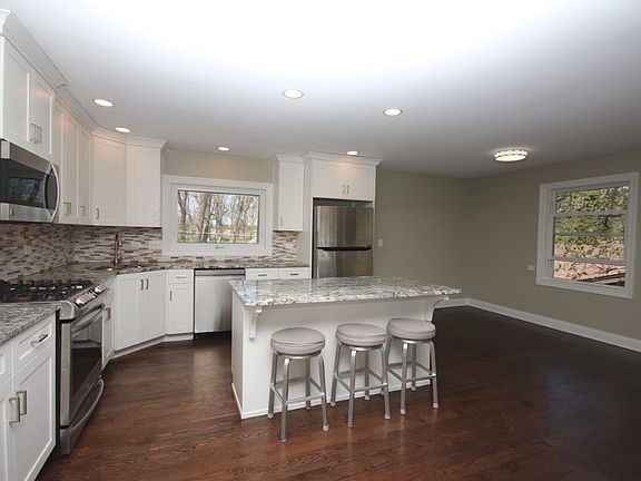 Don't miss this nice updated raised ranch conveniently located near the Barrington Rd interchange. Beautiful hardwood floors throughout the main level. Updated kitchen creates an open concept connecting the living room & dining room which is perfect for entertaining. Kitchen updates include 42" white shaker cabinets, granite counters, island with breakfast bar, recessed lighting & all stainless appliances. The spacious living room has a large bay window that provides plenty of natural light. The master bedroom has a full shared updated bath w/double bowl vanity. The lower level walkout basement has a 4th bedroom with a walk-in closet, a full bath with walk-in shower and a huge family room with newer vinyl plank flooring. Step through the new sliders and enjoy the large hot tub in the private fenced backyard. The yard features a custom built 16x12 shed with overhead door, a separate garden area and a large flower bed. The heated 2 car garage has new insulated doors and a workbench. Updates within the last 5-10 years include new kitchen, roof, windows and tankless water heater. Walk to library, park and bike paths.