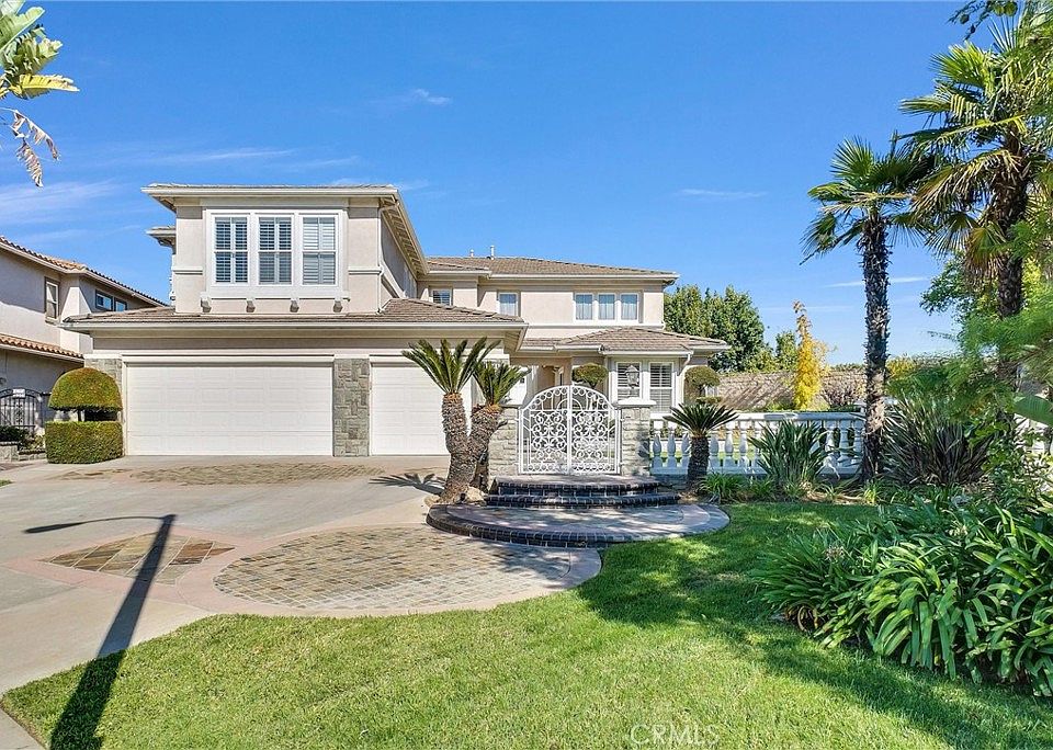 Nestled within Diamond Crest's prestigious gated community, 1548 Ruby Court is a luxurious haven with a specially designed front yard and an enchanting fountain. The spacious backyard has a designed pool, spa, BBQ grill, and patio with panoramic city lights and mountain views. The interior features marble flooring, crown molding, and dual pane windows throughout. A newly remodeled kitchen with upgraded granite countertops and a walk-in pantry complements the classy dining room and expansive family room with a fireplace. The master suite features double doors, walk-in closets, and a bathroom with a jacuzzi tub, shower, and vanity. Enjoy the extra-large balcony off the master suite. family room offers stunning views. The residence, served by acclaimed Walnut Schools, is walking distance to South Pointe Middle School.