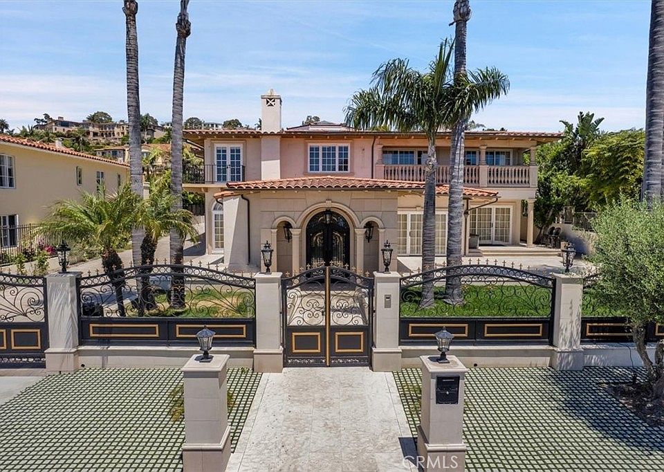 Once in a lifetime Opportunity to own this Spectacular Estate with Luxurious Panoramic Pacific Ocean & Sunset Views in the Prestigious Monte Malaga. This private and gated estate will be your forever home. This property boasts a fantastic landscape with mature palm trees, 15’ waterfall, a sparkling new pool, spa, firepits, pizza oven and much more. It was built with superior quality and attention to detail. As you walk up, you will notice the magnificent precast Limestone cladded façade. Then as you enter through the custom made Iron doors, you are met with grandeur. All the floors are custom inlayed Italian marble with gold tones throughout. The coffered ceiling are all handmade with gold leaf inlays. On one side you have a formal seating room with a wet bar. On the other side you formal living room that leads to a the gourmet kitchen with top of the line appliances and cabinetry. Off the kitchen you have access to the front courtyard where you can have your morning Latte from the built-in Mille espresso machine. Also off the kitchen is the formal dining room. This leads you to a grand foyer with a custom 14’ Italian Murano chandelier. Off of this room, you’ll find one of the bedrooms and lovely family room that has French door that lead to the back yard oasis. The walnut and oak flooring that begin at the spiral staircase are showcased throughout the second floor. Upstairs you will find 5 more bedrooms and bathrooms. The master suite is reminiscent of a day spa that includes a fireplace, steam shower, soaking tub and a private balcony where you can witness the amazing California sunset. On the second floor you’ll also find a maid’s quarters off of the laundry room, which has another staircase that can be used. There is also a host of exterior upgrades that have been made in addition to the new roof and solar power panels. Two new 5-ton HVAC units will keep you comfortable everyday of the year. A new outdoor bbq area has been built with a granite top and backsplash. The pool/spa and equipment have been updated with a custom Pebble tec finish. There is also a secluded retreat area to the back of the property where you can just sit and listen to the sounds of nature. Other amenities include a full Crestron suite, access control gate and driveway access, multiple EV charging outlets, RV hookups…and the list goes on