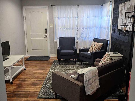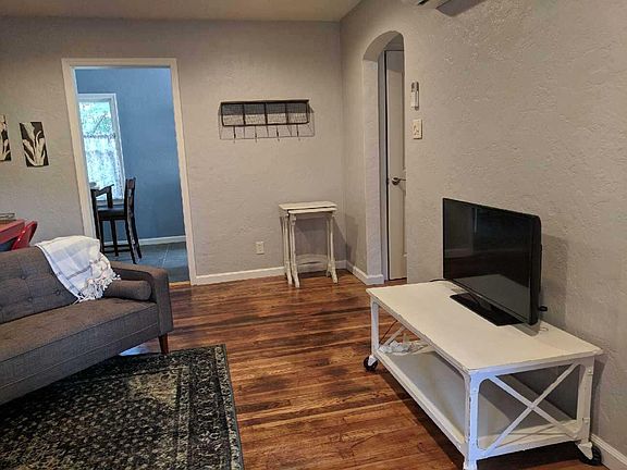 This is a remodeled and furnished apartment in downtown Redding. Everything was redone a few years back - floors, entire kitchen and bathroom, trim, landscaping, fans, recessed lighting, LED lighting throughout, fixtures, doors, AC/heating, electrical panel, etc. - The building has solar! - The AC/heating is efficient with a mini-splits. - 1 bedroom/ 1 bathroom - Kitchen has stainless steal appliances, lower cupboards, quarts countertops, tile, industrial style open shelving. - Private/fenced backyard. - Has a laundry room with washer and dryer included. - Has a stylish wood-plank wall in the living room. - Lots of windows. - Hardwood floors. - Clean gray tile in kitchen and dining room. - Furnished. - King size bed. - Fully equipped kitchen. This apartment is available around Feb. 24, 2025 or March 1, 2025. There is a carport in the back of the apartment or street parking is available. The apartment is $1200/month with a year lease and $1300/month with a shorter lease. Please message if you are interested and I will provide you with the zillow application. We will not be doing any showings until applications are complete. An annual lease is $1200/month. A month-to-month lease is $1300/month. Owner pays water. First month's rent and security deposit expected at signing.
