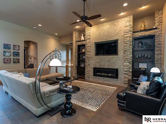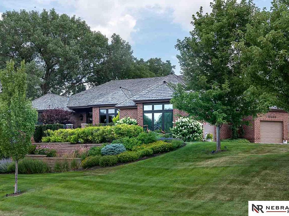 Custom built SHOWSTOPPER!! This 5 bed, 4 bth, 3 car, 3 fireplace beauty (on 2 lots) is nestled among the trees overlooking a private fishing lake. The views are beyond breathtaking! Enjoy sitting on the covered deck watching t.v. or just enjoying the fireplace. The kitchen is a chefs delight. Pantry has back and front door for ease of unloading groceries from garage. Heated floors throughout most of main floor. Laundry on main floor with optional hook ups in lower level. Garage has 2nd stairway directly into basement. Both bedrooms on main level have have their own private bathroom. Lower level bedrooms have a jack and jill bathroom. Lower level kitchen is equipped with dishwasher, refrigerator and sink with 210 hookup in place for stove. Other amenities include tons of storage, cedar closet, walkout, (wine cellar or pantry), security system, 2 50-gallon water heaters, zoned HVAC, and extra large drop zone. Close to beautiful Zorinsky Park and trails. This is a gated community. AMA