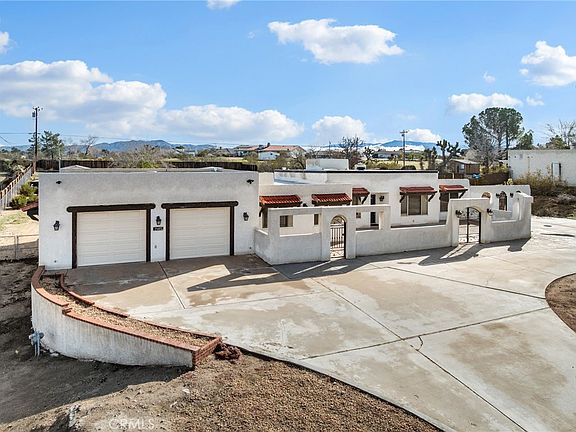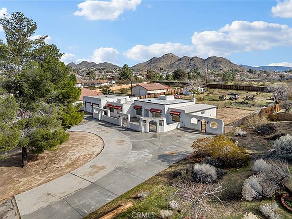 Welcome to your dream home in the highly sought-after Desert Knolls community of Apple Valley. This beautifully upgraded 4-bedroom, 2-bath residence sits on nearly ±0.9979 acres and offers an exceptional blend of luxury, comfort, and privacy. A custom wrought-iron gate and expansive courtyard create a striking first impression. Inside, the open split-floor plan is flooded with natural light, showcasing spacious living areas and a seamless flow throughout. The chef’s kitchen is a true showpiece, featuring quartz countertops, a glass tile backsplash, custom soft-close cabinetry, upgraded black stainless-steel appliances, and a double oven—perfect for entertaining. A generous dining area provides ample space for family and guests. The laundry room is thoughtfully designed with abundant cabinetry, quartz countertops, and a stainless single-bowl sink. The primary suite serves as a private retreat with a stunning walk-in closet complete with built-in shelving. The spa-inspired ensuite bath features a jetted soaking tub for two, bidet toilet, travertine walk-in shower with dual shower heads, and private courtyard access. The guest bathroom is equally refined with quartz countertops and a travertine surround. Additional highlights include a tankless water heater, recessed LED lighting, newer sliding glass patio doors, wood-plank tile flooring throughout, a detached garage with storage, and a 30-amp RV outlet. The fully fenced and cross-fenced lot offers RV parking and access, water service to the rear portion of the property, a large covered patio, and a private courtyard—providing endless possibilities to customize your outdoor space. This exceptional property delivers luxury living with room to grow. Schedule your private showing today—this opportunity won’t last.