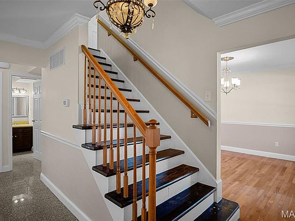 Showings Start This Thursday, October 23rd! Fantastic opportunity to live in a desirable Chesterfield neighborhood of Shenandoah. This 4+-bedroom, 3.5-bath home living large- over 3,000 sq. ft. of living space. Feature newer hardwood floors, 4" baseboards, 6 panel white interior doors with nickel hardware & windows; shine beautifully throughout the home. The eat-in kitchen offers a center island, granite countertops, stainless steel appliances and rich cabinetry. Main floor laundry/mud room! Family room boasts a cozy wood-burning fireplace and excellent views of the new deck and large yard that backs to the woods. The spacious & sun-filled living room and dining room are ready to entertain your future guests. Primary suite includes a Jacuzzi tub and walk-in closet. 3 addl' bedrooms (2 with walk-in closets) share a full bath with newer vanity & shower. The finished walkout lower level includes a full bath, sleeping area, and second laundry—perfect for extended family or guests. Good bones and numerous updates already in place, this home is ideal for an buyer that loves to entertain and enjoys the beautiful backyard. Conveniently located near shopping, parks, and Parkway Central Schools—don’t miss this opportunity to bring your ideas and make this home shine!