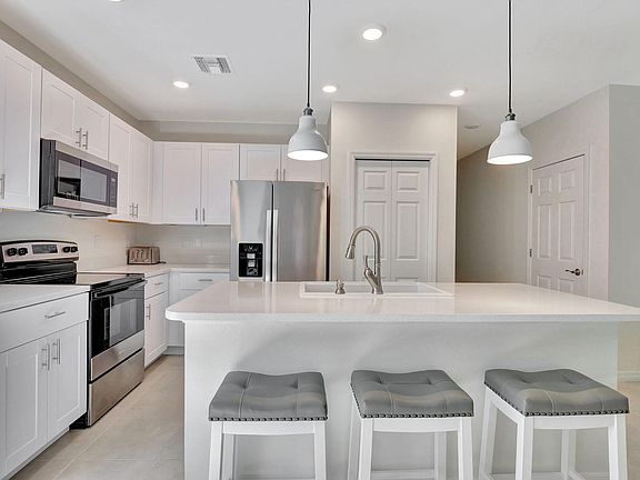 Step inside to fresh interior paint and brand-new carpet upstairs. The open-concept kitchen features stainless steel appliances, quartz countertops, stylish pendant lighting, farmhouse sink and new faucets, while every room includes ceiling fans for added comfort. A mini split system in the garage and an ultraviolet air scrubber on the AC enhance air quality and efficiency. Even the lawn has been replaced for a fresh curb appeal.