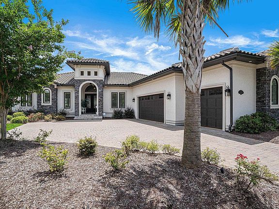 Luxurious Mediterranean style masterpiece in prestigious Grande Dunes Members Club. Welcome to your dream home! This luxurious, custom-built Mediterranean-style all stucco residence, constructed in 2021, is pristine and still feels like new-full of modern, high-end upgrades throughout. 4 bedrooms/4 full baths. Set on a spacious .40-acre lot with lush landscaping. The home greets you with a grand foyer and soaring high ceilings, setting the tone for elegance and sophistication. The open family room features oversized tile floors and offers stunning views of the sparkling saltwater pool and spa, visible from both the main living area and the expansive covered patio. The outdoor living space is a private oasis, highlighted by a spacious covered lanai with a built-in grill, an inviting in-ground saltwater pool with spa hot tub, and a privacy wall that creates the ultimate backyard retreat.The gourmet kitchen is a culinary showpiece, boasting granite counters, a waterfall-style island, stainless Viking appliances, custom cabinetry, a breakfast bar, pendant lighting, a gas cooktop with range hood, a stylish tile backsplash, walk in pantry, and a breakfast nook with a tray ceiling and marble inlay-perfect for casual dining or entertaining guests. Retreat to the master suite, a true sanctuary, featuring a spa-style bathroom with a walk-in steam shower, vessel tub, two oversized vanities, luxurious marble floors, and a huge walk-in closet. Each of the three additional bedrooms are spacious and includes its own full bath, ensuring comfort and privacy. Additional upgrades include a tankless hot water heater, surround sound system, a security system with outdoor cameras linked to the smart home system, and a massive 920 sq ft three-car oversized garage, offering ample space for vehicles and storage. The large laundry room is versatile enough to serve as an office or craft room, and a convenient drop zone adds to the home's functionality. Grande Dunes offers unparalleled amenities, including a 25,000 sq ft Ocean Club with fine dining, oceanfront pools with food and beverage service, and meeting rooms for events. Enjoy two 18-hole golf courses-one being the areas only truly private course designed by Nick Price several on-site restaurants, a 126-slip deep-water marina for vessels up to 120 ft, a Har-Tru tennis facility, and miles of biking and walking trails.If you/ve been searching for your dream home in Myrtle Beach's most sought-after community, look no further! Schedule your private tour of this exemplary property today and experience the Grande Dunes lifestyle for yourself!