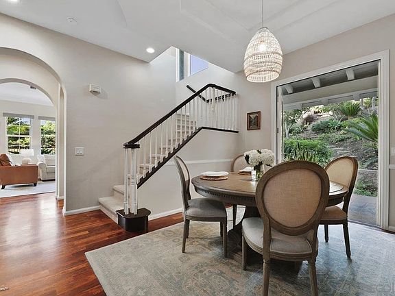 Soak in the sunset and ocean views at this turnkey Encinitas Ranch home. Located on the largest lot in the neighborhood and cushioned by a greenbelt, this property backs-up to the 5th hole of the Encinitas Ranch Golf Course. This 3bed, 2.5bath home is complemented by an abundance of natural light, high ceilings, and an option to convert upstairs bonus room into a 4th bedroom. Immaculately landscaped backyard with a stone pathway that leads to two elevated terraces featuring ocean and fairway views. The newly remodeled kitchen was designed with a coastal appeal and adorns Calacatta Gold Quartz countertops, fireclay farmhouse sink, and Newport Brass faucet & finishes. Downstairs has rosewood floors throughout and French Doors that open to a mature rose garden and expansive yard with endless options for entertaining. The master suite offers a private balcony with ocean and mountain views, oversized walk-in-closet, and soaking tub to enjoy a sunset or moonlight bath. Indoor-outdoor living at its finest.