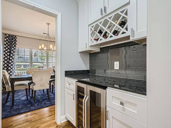 Living Area or Office with glass French Doors. Separate Dining Room with wine rack/wet bar. Granite counters and walk-in In Pantry; open Kitchen to Family Room with extended island/breakfast bar & stainless steel appliances.