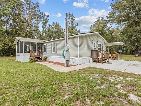 This roomy 3/2 home on a cleared 2.7 acres is in a secluded area and peaceful! Comes furnished, has a new roof, a fireplace, and the washer/dryer comes with the home! 2 Sheds and a large cement slab next to the home. A screened-in front AND back porch to enjoy your coffee in the morning and cocktails in the evening! With 2.7 acres, there's plenty of room for your animals! Just a few miles off US 19, you'll be very close to shopping and restaurants!