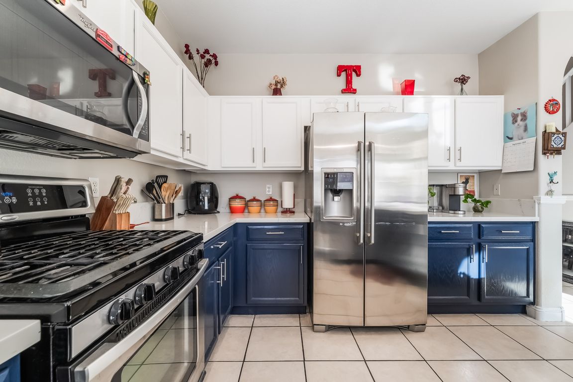 - Description: Breakfast Bar/Counter,Breakfast Nook/Eating Area,Custom Cabinets,Island,Lighting Recessed,Quartz Countertops,Tile Flooring