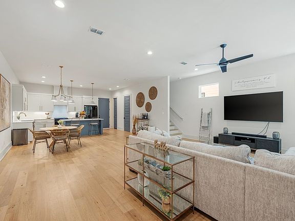 Midtown living at its Finest! Newer development within walking distance to Whole Foods Plaza, convenient to shopping and dining. This beautiful 3BR/2.5BA condo offers a grand entrance with towering ceilings, wide plank, engineered wood flooring, spacious, open bright living area. A wall of windows allows natural lighting, to provide the perfect ambiance. All windows have custom installed shades. Beautiful kitchen offers quartz countertop, ample cabinets, farmhouse sink and large island/bar, walk in pantry. Laundry room with washer and dryer included. Elegant Master suite with luxury bath, garden tub, walk in shower. Walk in closet. Modern, designer light fixtures throughout. 2 car garage and guest parking pad. Home can be purchased furnished.
