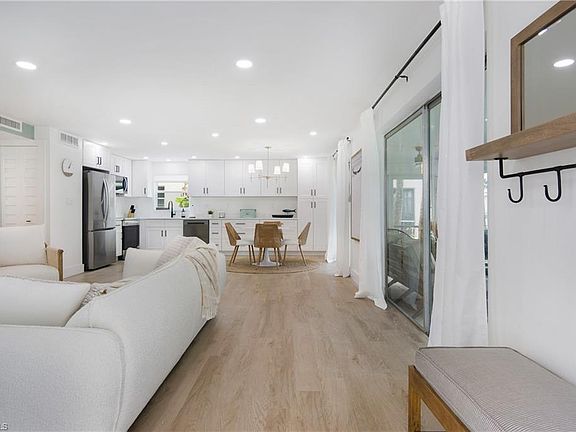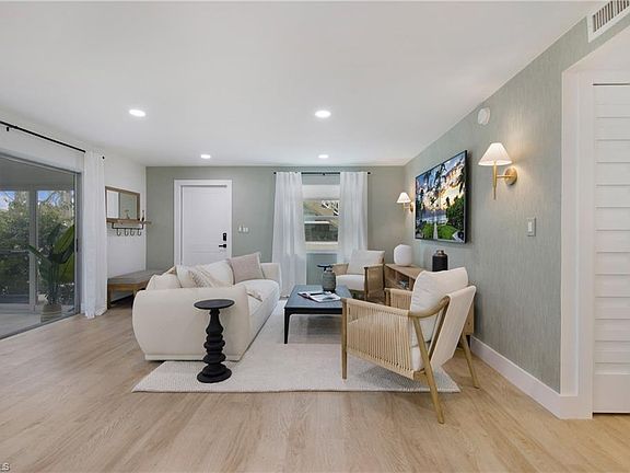 This charming, first floor 2 bedroom/2 bathroom condo is the perfect short or long term rental for simple, modern living. Completely renovated, this home boasts an open layout illuminated by natural light, new laminate wood floors and upgrades galore. This home features a spacious living area with brand new furniture, appliances and television, or effortless, turnkey living. Primary bedroom features a new King sized bed, spacious closet and en suite bathroom with shower. Second bedroom has two new Full sized beds and large closet. Second bathroom offers a brand new shower and bathtub. Private landscaped views from living and kitchen area can be enjoyed inside or outside on the enclosed lanai, which is perfect for opening up for fresh air or leaving closed while enjoying a good book or cup of coffee. Washer and dryer are conveniently located in residence, as well as additional storage unit outside, great for bikes and beach chairs! Royal Bay Villas is centrally located in Naples highly sought Royal Harbor area. Minutes from downtown Naples, shopping, dining and entertainment, as well as spectacular Naples beaches! Community pool and tennis courts are available for tenants to use throughout their stay. Don't miss this opportunity to savor a piece of paradise in this one of a kind home!