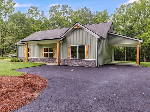 Construction is well UNDERWAY! Do not miss your chance to own a SPACIOUS RANCH in the desirable South Paulding area with no HOA fees! This gorgeous step-less RANCH with an open-concept design features a spacious family room with vaulted ceilings. The gourmet kitchen is equipped with GRANITE countertops, a FARMHOUSE SINK, a large PANTRY & stainless steel appliances. Perfect for entertaining! The large master suite offers a private retreat with a beautiful ensuite bathroom featuring a double vanity, custom TILE SHOWER & a generous walk-in closet. Two generously sized secondary bedrooms offer ample storage space with large closets, complemented by a stylish full bathroom. Step outside to the COVERED back patio for your morning coffee, or relax on the rocking chair front porch. The attached CARPORT is an added convenience for all of your outdoor needs. Standard features include beautiful luxury LVP in the kitchen, living room, entry, and baths; plush carpeting in the bedrooms; and high-quality finishes throughout. Enjoy the freedom of a PRIVATE LOT with no HOA restrictions, combining tranquility with convenient access. Not quite the right floor plan? We have other options & lots available! Don't miss this unique opportunity to create your dream home in a tranquil setting. Be sure to inquire about our incentives, utilizing the seller's approved lenders. Contact us today for further details! The photos are not of the actual home but represent this plan. (Lot and drone pictures are of the lot.) Minutes to Dallas, Hiram, Rockmart, Villa Rica & I-20!