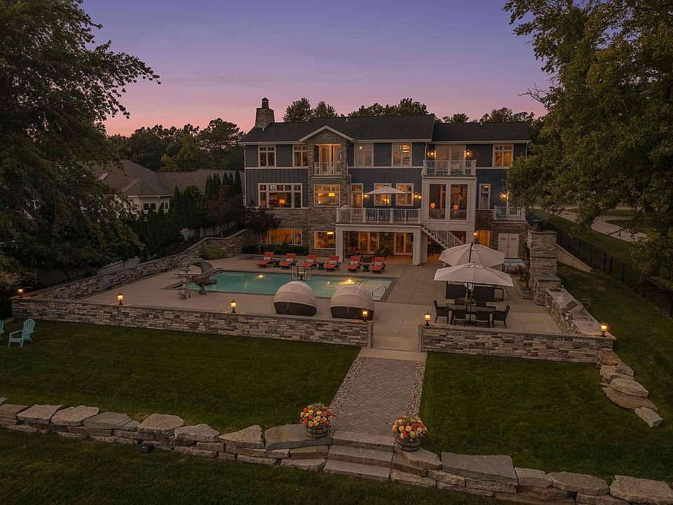 Here it is! This INCREDIBLE HOME was designed by Oppenhuizen Architects for the owner with every amenity available! A Grand River Waterfront Estate offering all that anyone could imagine. A home for entertaining, fabulous living indoors and outdoors. You have to visit this home more than once to truly appreciate all that it offers. Spectacular main level with views of the river from every room. The kitchen features Wolf, Sub-Zero, and Miele Built in appliances, a center island for work around and custom cabinetry, all open to the dining area and living room. An office with custom built-ins. A guest suite with private balcony. A three-season room with a stone fireplace and access to the deck overlooking the pool area and river. Main level laundry. The elevator takes you to the upper level or use one of two staircases. On the upper level you will see a complete primary suite with private deck, three additional bedrooms, another laundry room, three full baths, and a bonus room. Down to the lower level you have unbelievable space. A family room large enough for a huge group, another kitchen, built-in soda fountain, bar area, exercise room, pool changing room and then a huge workshop with overhead door leading to the side drive. Outside you have to see the pool area, with a separate spa, a complete outdoor kitchen with fireplace. The waterfront has its own boat well, a fifty-foot dock, two 16,000 lb boat lifts and a triple jet dock! All this and more - across the street you have a guest or rental home on 1.45 acres. This property you will not want to miss!