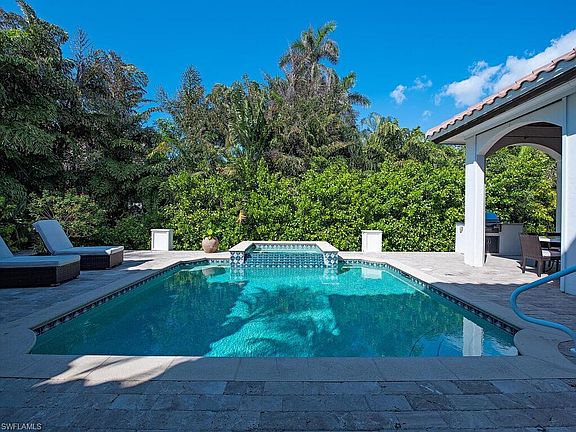 Enjoy the southern end of Old Naples in the perfect spot between two of the most prized streets; Gulf Shore Blvd and Gordon Drive. Just a block from the beach and a minute distance from Third Street shopping/dining, this home is an ideal location for beach lovers and metropolitans who value their privacy. Unwind on the spacious, covered outdoor living area, or in the pool and spa at the end of a long day. The spacious master bedroom with dual walk-in closets is located next to the office. With a layout that lends itself to convenient living and spacious suites for guests, this home is perfect for any type of entertaining. Converted to Natural Gas in 2021 and re-roofed in 2024, this home has the convenience and peace of mind actions taken that one looks for in an Old Naples home. A rare opportunity to enjoy one of the most coveted locations in the nation.