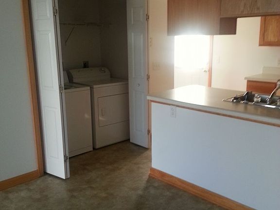 This unique floor plan gives you all the space you need, and privacy to boot. You'll walk into an open living room/dining room area which leads directly into the kitchen. Your kitchen is fully equipped, including a water/ice dispenser from your refrigerator. There is a full sized washer/dryer, which is off the kitchen, as well as a good sized pantry. You can access your back patio from the kitchen, and maybe even catch Broadway High School games from your patio. The master suite is downstairs with a nice walk in closet, and there are two good sized rooms upstairs, separated with the second full bath. This home provides you with a 1 car garage, a small driveway, and the comfort of central heat and air. All lawn care is done for you.