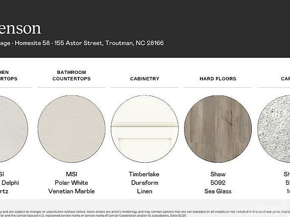 This new two-story Dickenson floorplan is designed for family living. It showcases an open-concept layout among the first-floor family room, breakfast room and kitchen. Upstairs balances shared living and privacy with a centrally located loft and five bedrooms including the owner’s suite, three of which have walk-in closets. Plus, our signature Everything's Included program means you will get quartz or granite kitchen countertops, stainless steel appliances, luxury vinyl plank flooring, and so much more at no extra cost! Winecoff Village is conveniently located in Troutman, offering excellent outdoor recreation at nearby Lake Norman State Park. Residents can enjoy a charming downtown area filled with ample shopping and dining options. Winecoff Village is approximately a 40-minute drive to Uptown Charlotte, thanks to close proximity to I-77.