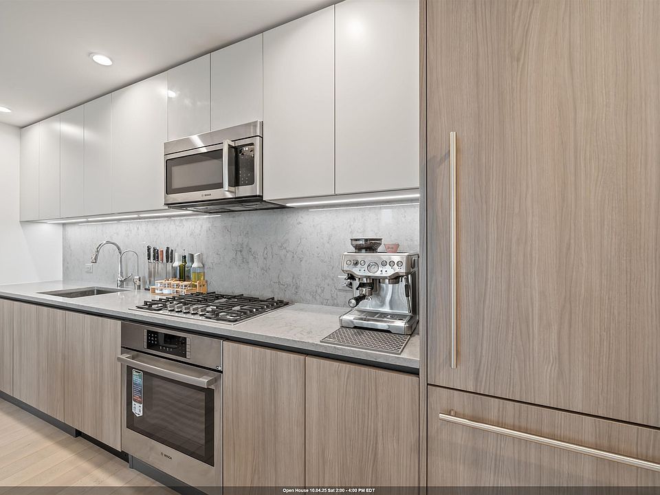 Sleek white oak floorsIn-unit laundryBosch appliances