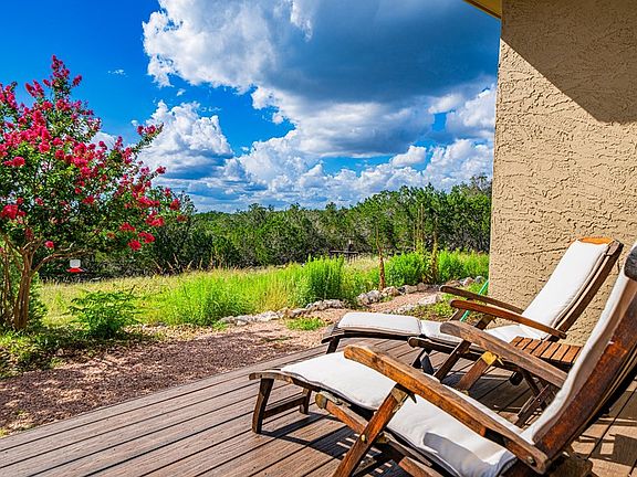 Deluxe Hill Country home with 4 bedrooms and 3-1/2 baths on 5+ acres in Guadalupe Ranch Estates. Dynamite views from both the lower and the upper back decks. Open living room, dining room and kitchen for a nice flow for entertaining. Many extras including solid wood red oak floors in the primary and guest bedrooms, custom cabinetry throughout with extra shelving and built-ins inside all closets. An amazing butler's pantry in the utility room. Listen to your favorite music with whole house speakers and internet wiring, or enjoy the songs of a variety of birds outdoors in the carefully planned wild bird haven. The lower outdoor patio is equipped with an outdoor kitchen, Coyote grill, warming draw, and soothing fountain. Insulated, spacious two-car garage with deluxe dog bath and an A/C unit to double as a gym. Two bedrooms may be used as primary bedrooms, one up and one down. One of the guests rooms is being used as an office. Water for the home is furnished by well and/or by a high capacity rain catchment system. RV hook-up. Guadalupe Ranch Estates have both a shallow water and a deep-water HOA park with private access to the Guadalupe River for swimming, fishing or kayaking.