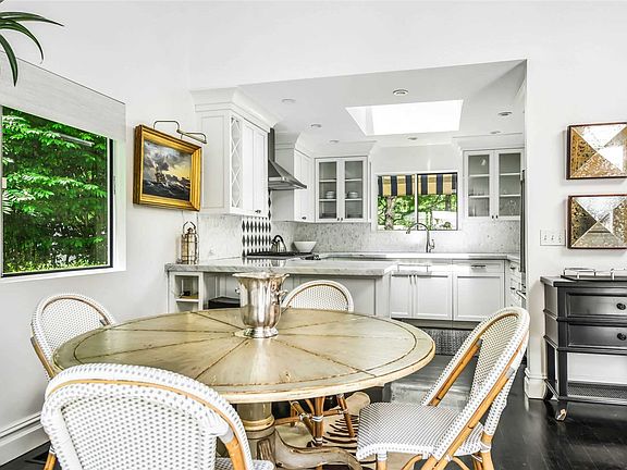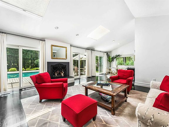 Located on a quiet street this impeccable home offers a charmingly chic aesthetic in the hamlet of Quiogue. First rate amenities include an open concept design, soaring ceilings, separate living room with fireplace and dining area, and a designer kitchen with high-end appliances. There is an ensuite master and two additional bedrooms and bath. The property is meticulously maintained with new landscaping, a deer proof fence, a 20x40 pool. Sliding doors from all rooms lead to covered deck. Full basement and room for a garage.