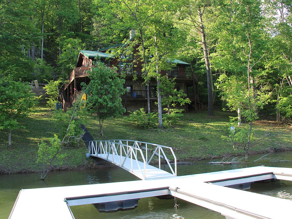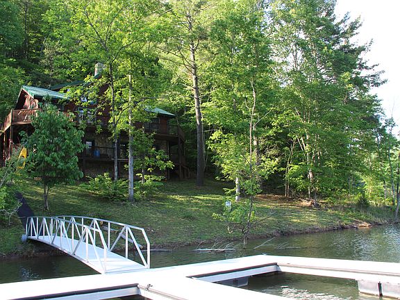 Luxurious Lake Cabin Living! Over 200' of gentle lake frontage, gorgeous custom built log home, and a double aluminum dock equate to the dream lake property that you have been working for your whole life! This home was the personal capstone for a local builder and no detail was overlooked from the Brazilian walnut floors, curly maple cabinets throughout, true log construction, privacy, and views. Situated on over 4 acres, it is the only home on this side of a peaceful cove on one of the nations cleanest and most beautiful lakes. Well planned out with all the necessities on the main level, this could be a full time residence, vacation home, or powerhouse rental. Every room in the house has a lake view, with the upstairs loft currently utilized as a third sleeping space with a full bath. Main level has the master suite with a spacious bath and massive closet, as well as the kitchen, dining area, half bath, laundry, and living area with stone fireplace and vaulted ceilings with exposed beams. Lower level is all tile with another bedroom, full bath with jetted tub, and massive game area accented by a stone wood-burning fireplace. Both levels have wrap around decks an easy stroll from waters edge.