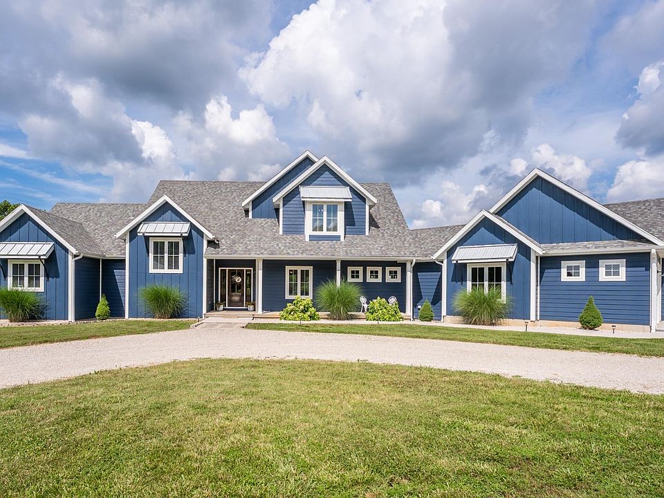 Once in a lifetime opportunity to own this Stunning 17 Acre +/- Modern Farmhouse Estate. This unrestricted, secluded, scenic, and usable land just 1.5 miles from Bull Shoals Lake and 10 minutes to Lake Taneycomo. NO HOA's! This property offers a mix of open pasture, valley views, wet-weather creek, and abundant wildlife. Partially fenced, bring your horses, or a little livestock, great recreation property.The custom-built Modern Farmhouse-style home features 4 beds, 3.5 baths, and premium finishes throughout. Highlights include multi-width 3/4'' hickory flooring, reclaimed hand-hewn oak beam accents, vaulted and shiplap ceilings, quartz countertops, and a wood-burning fireplace with blower. Chef's kitchen with custom cabinetry, induction cooktop, and professional-grade appliances. Spacious master suite with custom tile shower, soaker tub, and dual vanities.Additional features:* Public water, private septic, fiberoptic internet* Remote security gate with touchpad* Walk-in pantry & laundry room* Above-ground pool with grilling porch and walkout basement* 2 HVAC systems (one dual fuel w/ propane backup)* 2 concrete storm shelters with steel doors* Wet bar, jack & jill bath upstairs, large basement storage room* 3-car garage with attic storage* Raised garden beds, fruit trees, thornless blackberries* 2 frost-resistant hydrants**36' x 54' shop building includes:*** 2 oversized parking bays* Attached 12'x36' parking pad* Apartment with full kitchen, bathroom, washer/dryer, and mini-split HVAC* Fire-rated sheetrock between apartment and shop* Covered porchJust 25 minutes to Branson. Suitable for horses, cattle, or future development. Shown by appointment only to pre-qualified buyers. All Measurements Are Approx. All information is deemed to be reliable, but Buyer and Buyers Agent please do own Due Diligence on Rules and Regulations and other matters.