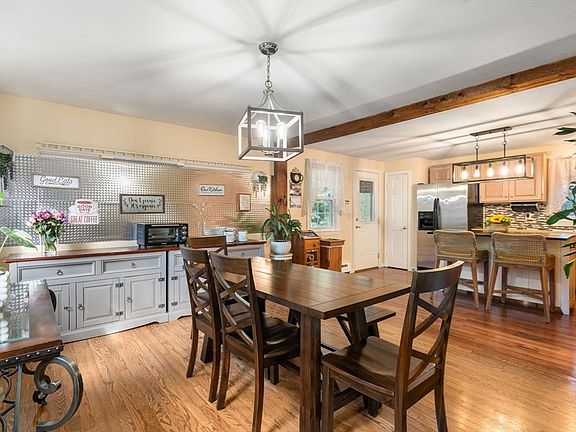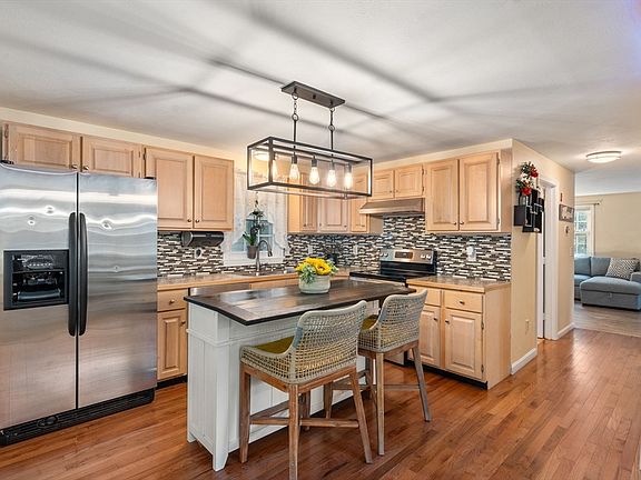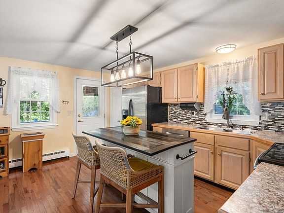 Welcome to this well-maintained 3-bedroom, 3-bath home, perfectly situated at the end of a dead-end street offering privacy and natural beauty. Set on a nicely landscaped lot with perennial gardens and stone walls, this property provides a peaceful retreat surrounded by woods on the sides and back. You'll love the fenced backyard, patio, and a dedicated area perfect for a hobby farm. Inside, the home features a bright and open kitchen with stainless steel appliances and maple cabinets, flowing into a large front-to-back living room with gleaming hardwood floors throughout. A spacious 3-season room with soaring cathedral ceilings overlooks the private wooded backyard—ideal for relaxing or entertaining. The lower level offers a partially finished space, perfect for additional living. This serene and private property is perfect for those seeking space, comfort, and a connection to nature—all while being close to modern conveniences.