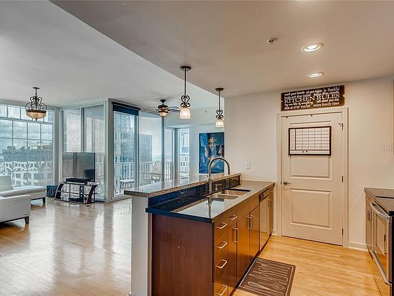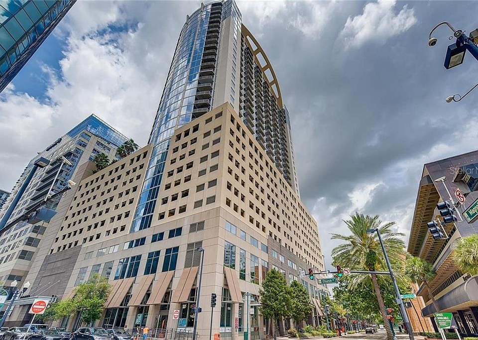PRICED TO SELL! Experience downtown living at its finest with this 2 Bedroom, 2 Bath CORNER UNIT in the desirable "Solaire at the Plaza". The Solaire is a 29-story luxury condominium in the heart of downtown, within minutes of everything downtown has to offer: Amway, Lake Eola, the Dr Phillips Performing Arts Center, Orlando City Soccer, art galleries, nightlife, and an incredible range of restaurants, too. You'll love this unit's open floorplan which offers great city views through the floor-to-ceiling windows. Or, step outside to your PRIVATE BALCONY to enjoy your morning coffee or after-work drink. Beyond the city-views, you can even enjoy the Universal Studios fireworks from here, too! This condo has wood flooring in the living area, granite countertops, stainless steel appliances, a walk-in-closet in the master and custom-shelving in guest bedroom closet for additional storage. The Solaire provides 24-hour security, TWO ASSIGNED parking spaces, and controlled access to each floor with fingerprint security. Additional RESORT-LIKE amenities on the 10th floor include a pool, patio, and BBQ grill, as well as a lounge and 24-hour fitness center. The HOA fee also includes cable and high-speed internet. The incredible downtown location also provides easy access to I-4 and 408, as well as Orlando Health and the SunRail station. Schedule your showing today!
