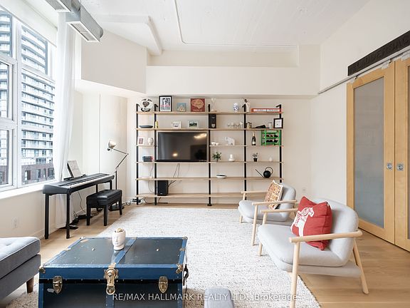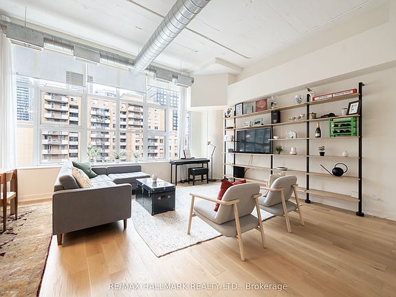 Live in Iconic Merchandise Lofts! Experience the best of downtown living in this South-facing spacious 2+Den with over 1,200 sq ft of living space, featuring soaring 12 ft ceilings and expansive windows that flood the space with natural light. Open concept chefs kitchen with beautiful granite waterfall countertops, and stainless steel appliances - perfect for entertaining or everyday living. Functional layout with primary bedroom featuring ensuite bath & storage, second bedroom plus versatile den/workspace. Includes parking & locker. Step outside and unwind on the incredible rooftop oasis offering gardens, BBQs, sunbathing areas, dog walk space, and an indoor pool - ideal for relaxing or hosting friends. Amenities include a fully equipped gym, yoga room, sauna, library, and games room. Enjoy unmatched convenience with a Walk Score of 100. Metro Supermarket and Page One Café right in the building. Just a 5-minute walk to Eaton Centre, Dundas Square, Toronto Metropolitan University, TTC and endless dining along Yonge Street.This is your chance to own a piece of Toronto history in one of its most sought-after loft conversions!