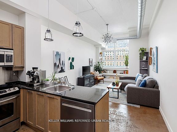 Welcome to this exceptionally spacious, rarely offered one-bedroom loft (with parking!) at the highly sought-after Merchandise Lofts. This sun-drenched hard loft conversion is a true blend of industrial charm and modern luxury. Located in the heart of the city, this stunning loft offers the perfect balance of city energy and serene living space. Once the Simpsons Department Store Warehouse, the Merchandise Lofts are rich in history and character. This freshly painted,open-concept 1-bedroom loft features an expansive layout with soaring 12'+ ceilings, oversized windows (North-facing with unobstructed views), polished concrete floors, exposed ductwork, and dramatic architectural columns. The building amenities are unparalleled! Unwind in the incredible rooftop oasis, complete with gardens, a BBQ area, sunbathing spots, a dog-walking area...not to mention the indoor pool, Gym, basketball court, yoga room, sauna, library, games room, guest suites and more! Wow! Wow! This iconic building is perfectly located near TMU, Eaton Centre, Massey Hall,and just steps from TTC and a Metro grocery store right below. Don't miss out on this rare opportunity to live in history and luxury in the heart of downtown. Offers anytime!