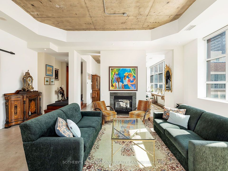 Overflowing with personality, this stylish and sun-filled New York-style hard loft conversion commands an unparalleled view of thriving downtown Toronto from your house in the sky. The heart of the city pulses just outside your door, but inside is your oasis. Ideally positioned in the dynamic and diverse Church-Yonge Corridor, this 2-bedroom, 2.5-bath home with 2,487 square feet of living space offers easy access to the entire city. Astonishing 24-foot ceilings in the entrance foyer create an airy, relaxed vibe that designers have maximized for elegance and comfort. The main level is an art lovers dream with ample well-lit wall space, library shelving, a two-sided fireplace and polished concrete flooring. A gourmands kitchen with Bertazzoni gas stove and microwave, custom double-level cabinetry, cork flooring, and a professional size, extra large, granite-topped centre island beckons culinary creativity. Upstairs, the primary bedroom suite envelops you in serenity with a gas fireplace, jacuzzi tub, dual vanities, and panoramic skyline views through floor-to-ceiling windows unrivalled by any in this city. Multiple walkouts lead to an enormous private rooftop terrace (1,220 sq. ft.)with southern, western and northern views that includes shack with shelves, fridge, and water/gas hookups for convenient outdoor entertaining or just enjoying a quiet evening beverage. Amenities Include Basketball Court, Gym, Rooftop Indoor Pool, Rooftop Dog Park. Don't Miss Out on this Unique Loft!