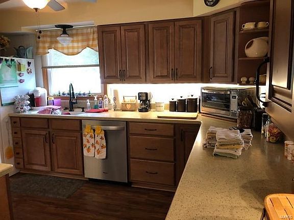 Enjoy the flowers and landscaping with the home and enjoy the newer 12x24 deck these summer evenings. Inside you will find a large living room with built in bookcases, recently updated kitchen with solid surface counter tops, nice sized dining room and all new insulated windows by Sun Windows. Newer furnace and air installed in 2003 and new roof in 2014. There is a nice sized master bedroom with remodeled bath and there is a bonus area upstairs that could be used for a multitude of uses. There is a tandem basement garage plus the 4 car outbuilding. Downstairs has 2 rooms that have been sectioned off, and an older kitchen and rough in bath area. $504 HSA warranty plan.Sellers recently had electrical issues corrected noted in previous building inspection. See attached.The detached approx 30x50 outbuilding has electric and water spigot nearby. Acreage is partially fenced with approx 3 acres pasture. Concrete block storage bldg and older shed on property.