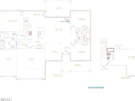Tile showerSplit bedroom planWalk in closetWalk out attic storageFormal din