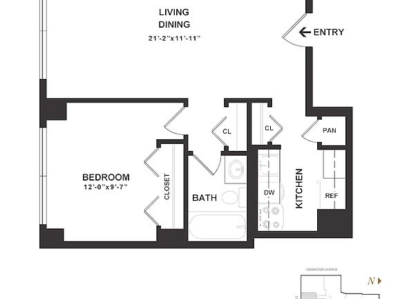 Bright one bedroom with lots of natural light! Features a galley kitchen with stainless steel appliances, hardwood floors, and generous closet space.