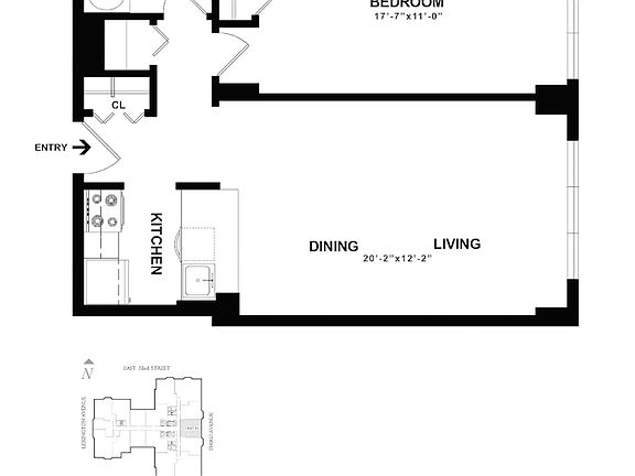 Bright one bedroom with eastern views and lots of natural light. Features a pass-through kitchen with breakfast bar and generous closet space.